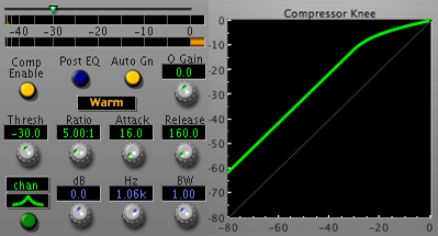 In this context we are talking about the second process — dynamics control. Dynamics control is the process of automatically adjusting the volume control on an audio channel. The gain level of the channel is automatically adjusted by the process based upon the level of the audio signal passing through the processes detector. A compressor is a dynamics control processor that lowers the volume of the signal when the overall level of the signal increases. As a result, it tends to moderate or compress the dynamic range of the signal.
